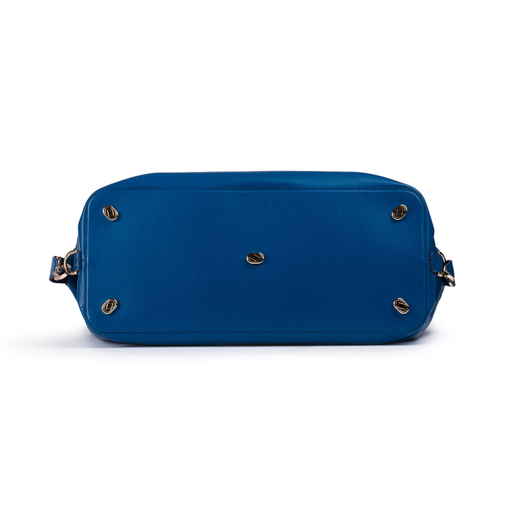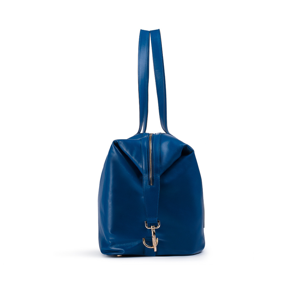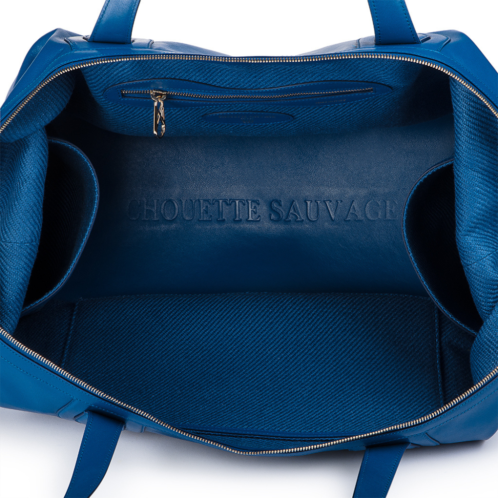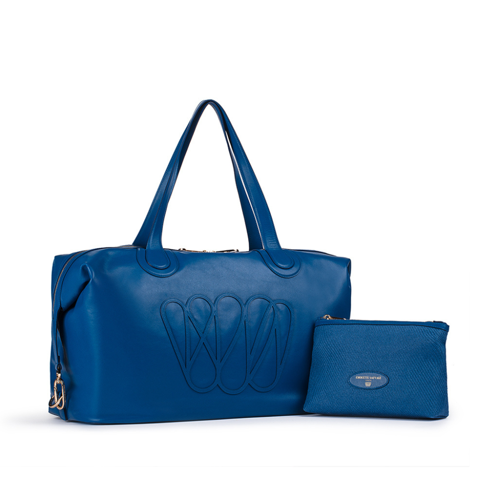 Meticulously crafted in Italy from rescued calfskin leather in vibrant cobalt, and lined with Irish linen, prized for its natural breathability and durability. Central to the design is the leather Ruff signifying courage, wisdom and individuality. Each piece comes with its matching linen cosmetic bag.