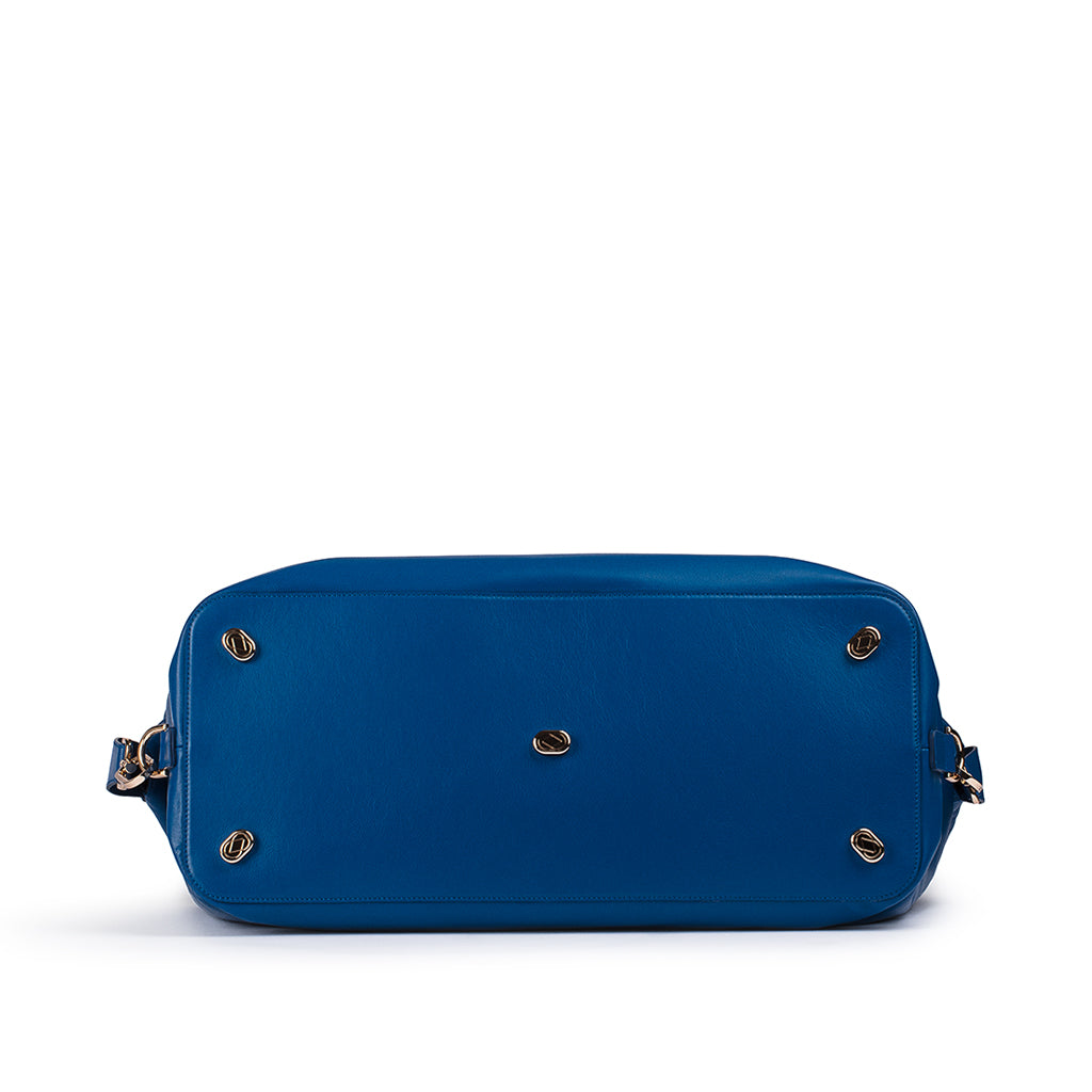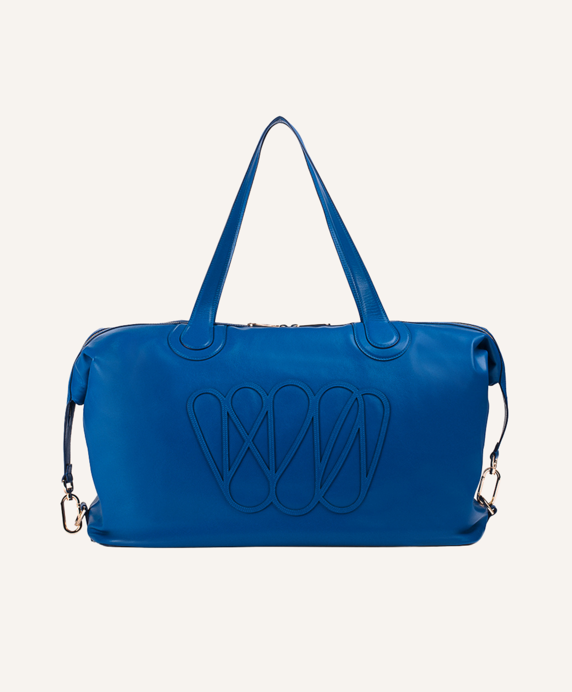 This Aragon Weekend is part of a limited-edition run of just 10 pieces. Crafted from supple Italian calfskin in bold Cobalt hue, the Aragon is a luxurious travel companion. Vibrant yet sculptural, it doubles effortlessly as a striking oversized handbag. Lined with Irish linen—chosen for its breathable and durable qualities—it comes with a separate matching linen cosmetic bag for refined practicality.