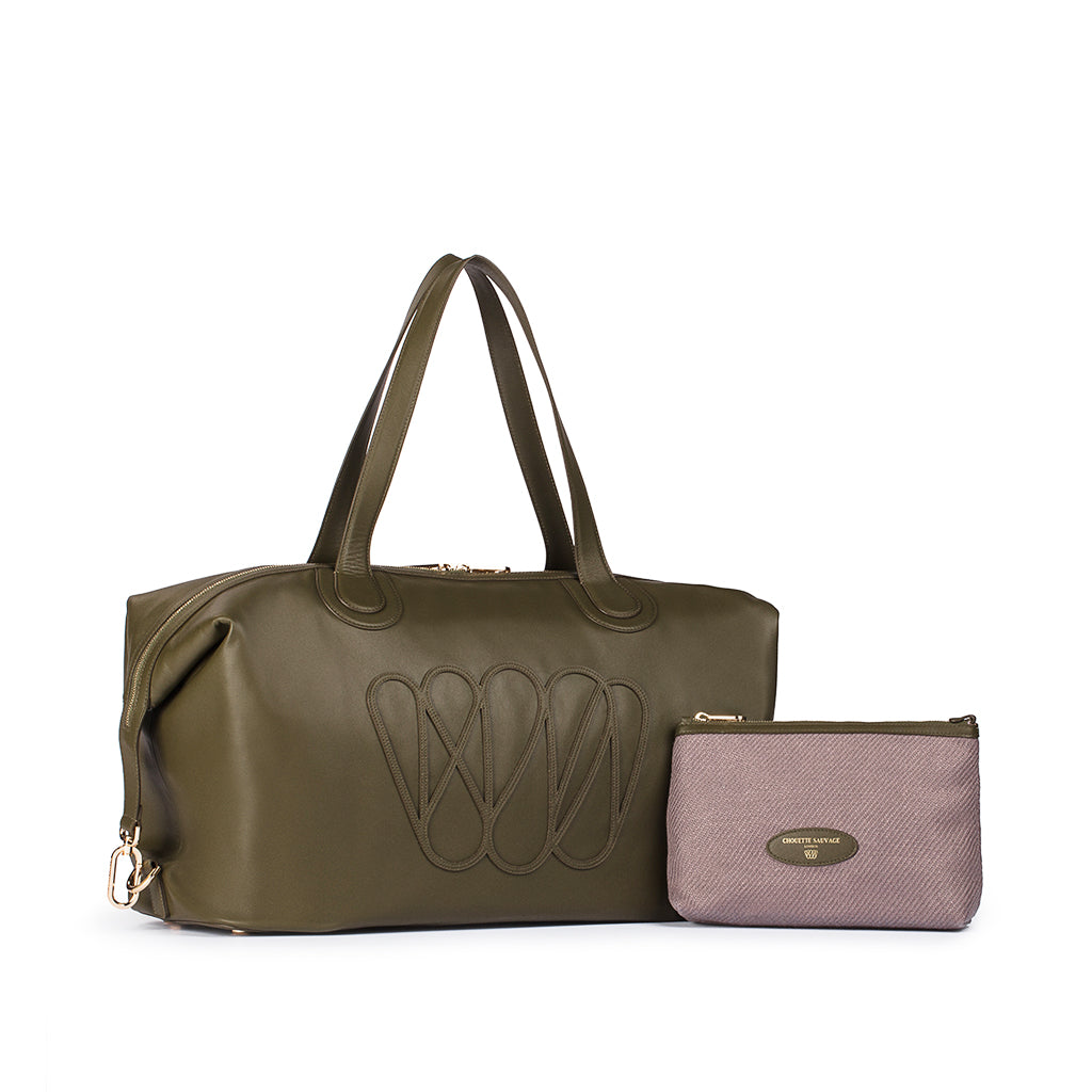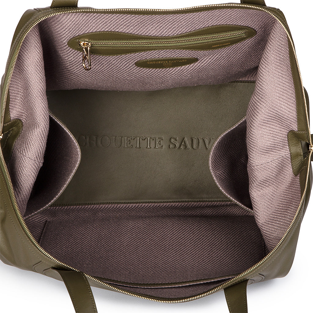 Meticulously crafted in Italy from rescued full grain supple matt cow leather in olive moss, and lined with Irish linen, prized for its natural breathability and durability. Central to the design is the leather Ruff signifying courage, wisdom and individuality. Each piece comes with its matching linen cosmetic bag.