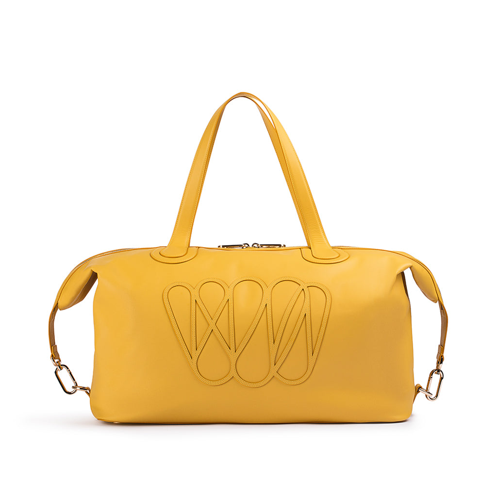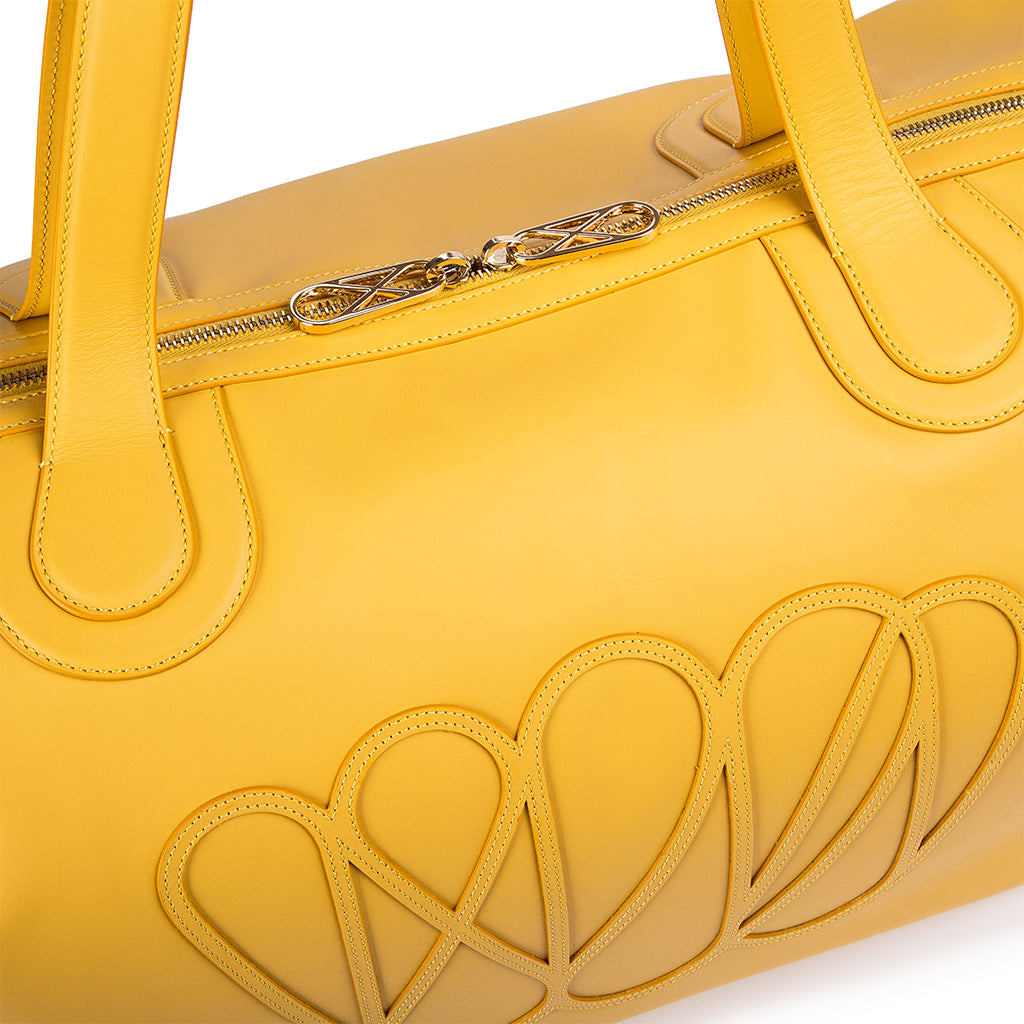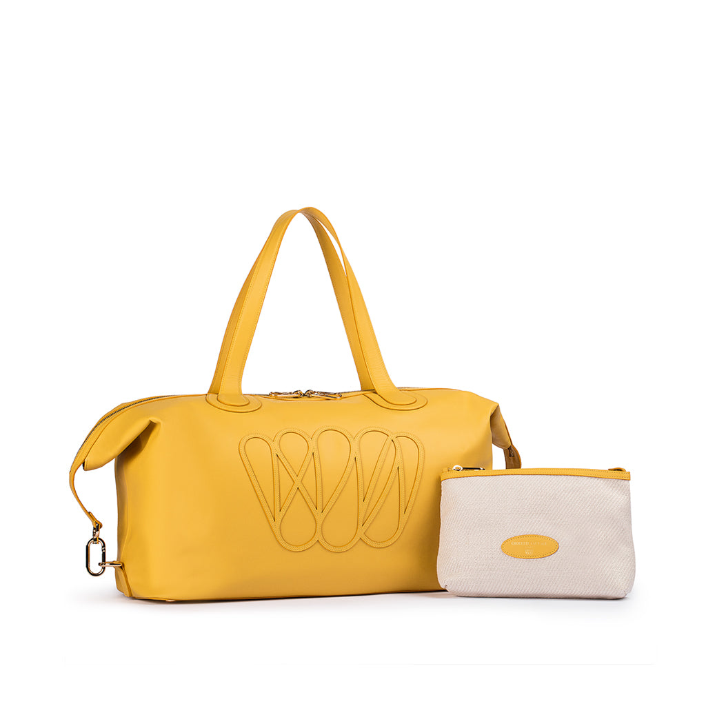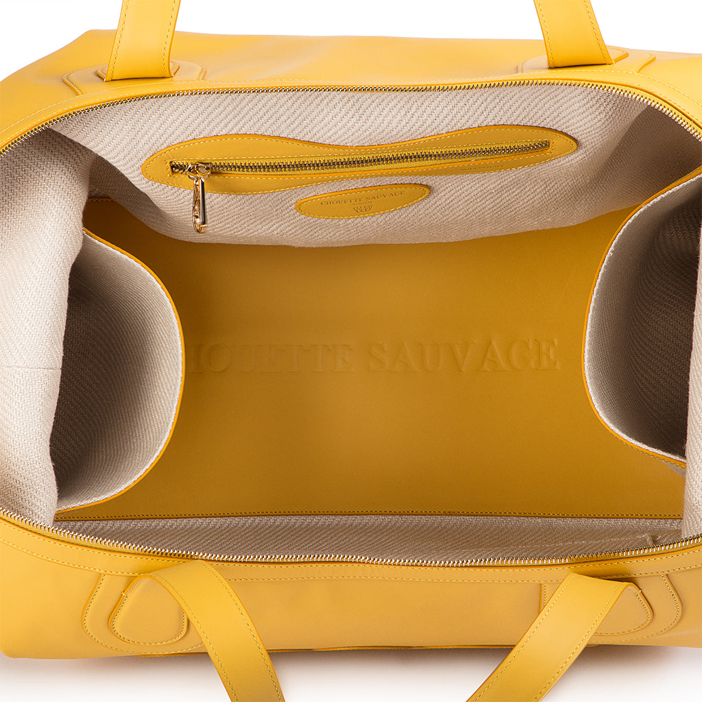 This Aragon Weekend is part of a limited-edition run of just 10 pieces. Crafted from Italian calfskin in ochre-toned Saffron yellow, the Aragon is a luxurious travel companion. Warm and commanding, it doubles effortlessly as a standout oversized handbag. Lined with Irish linen—chosen for its breathable and durable qualities—it comes with a separate matching linen cosmetic bag for refined practicality.