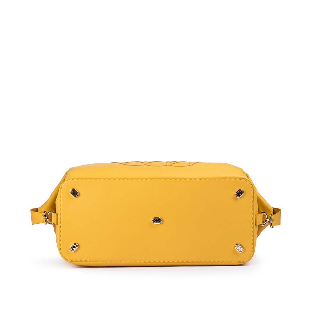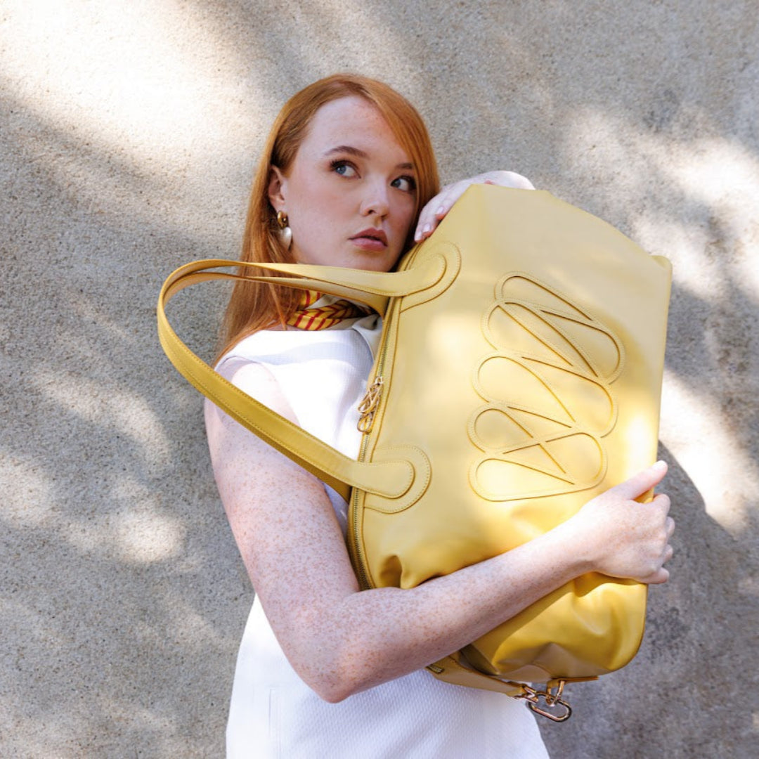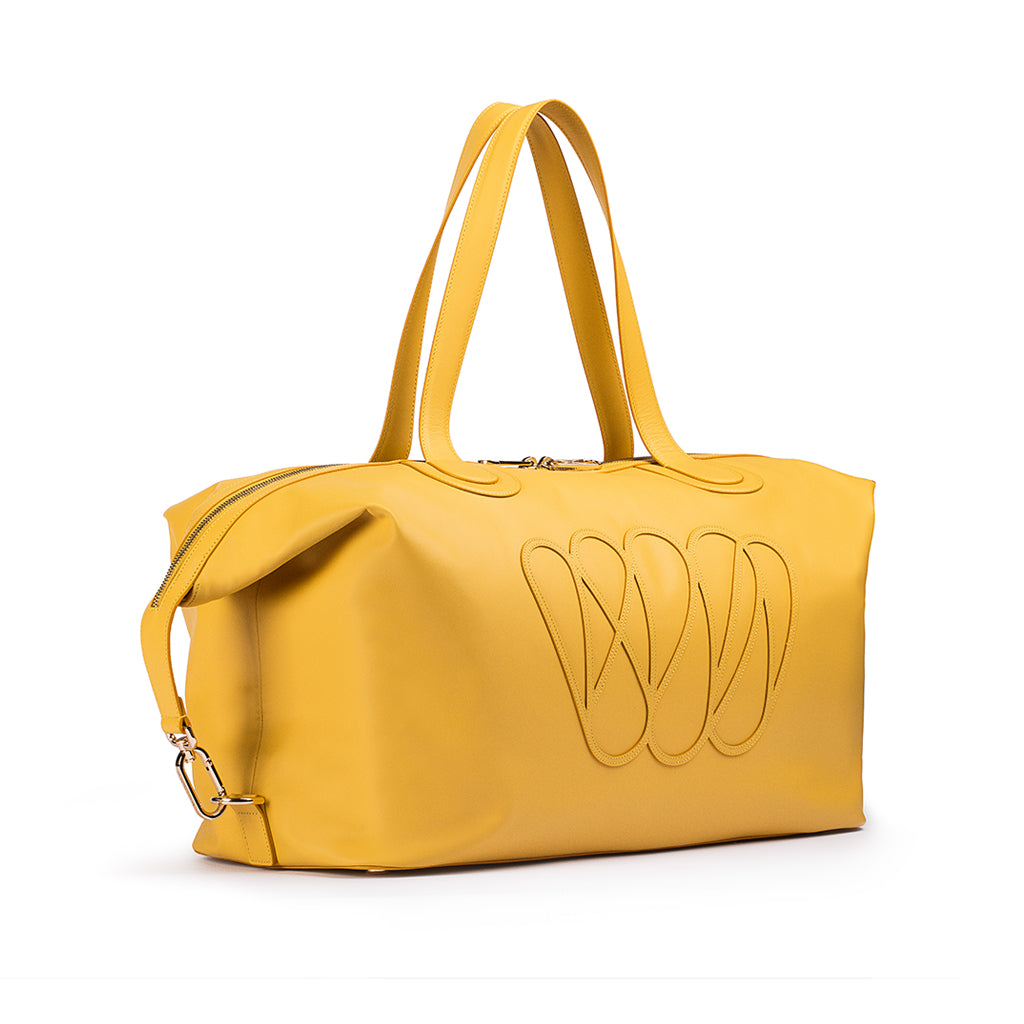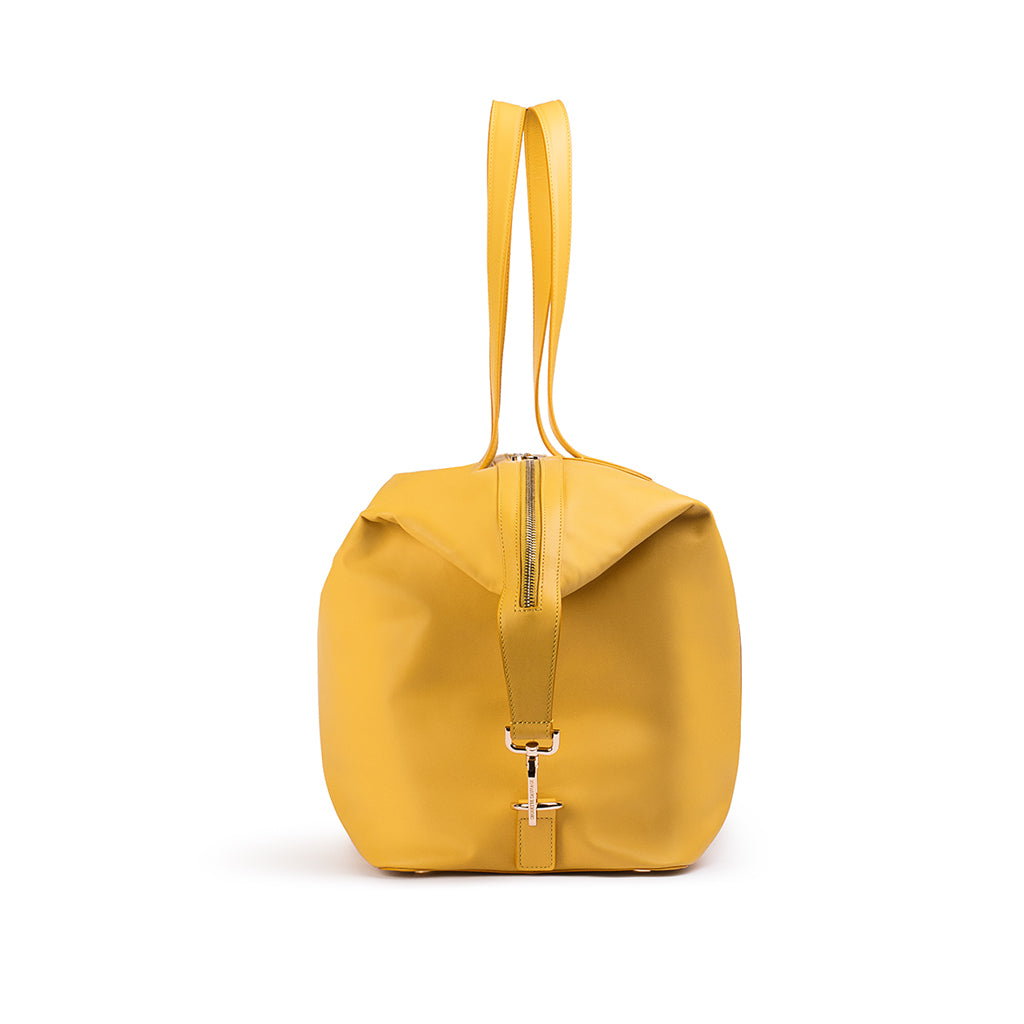This Aragon Weekend is part of a limited-edition run of just 10 pieces. Crafted from Italian calfskin in ochre-toned Saffron yellow, the Aragon is a luxurious travel companion. Warm and commanding, it doubles effortlessly as a standout oversized handbag. Lined with Irish linen—chosen for its breathable and durable qualities—it comes with a separate matching linen cosmetic bag for refined practicality.