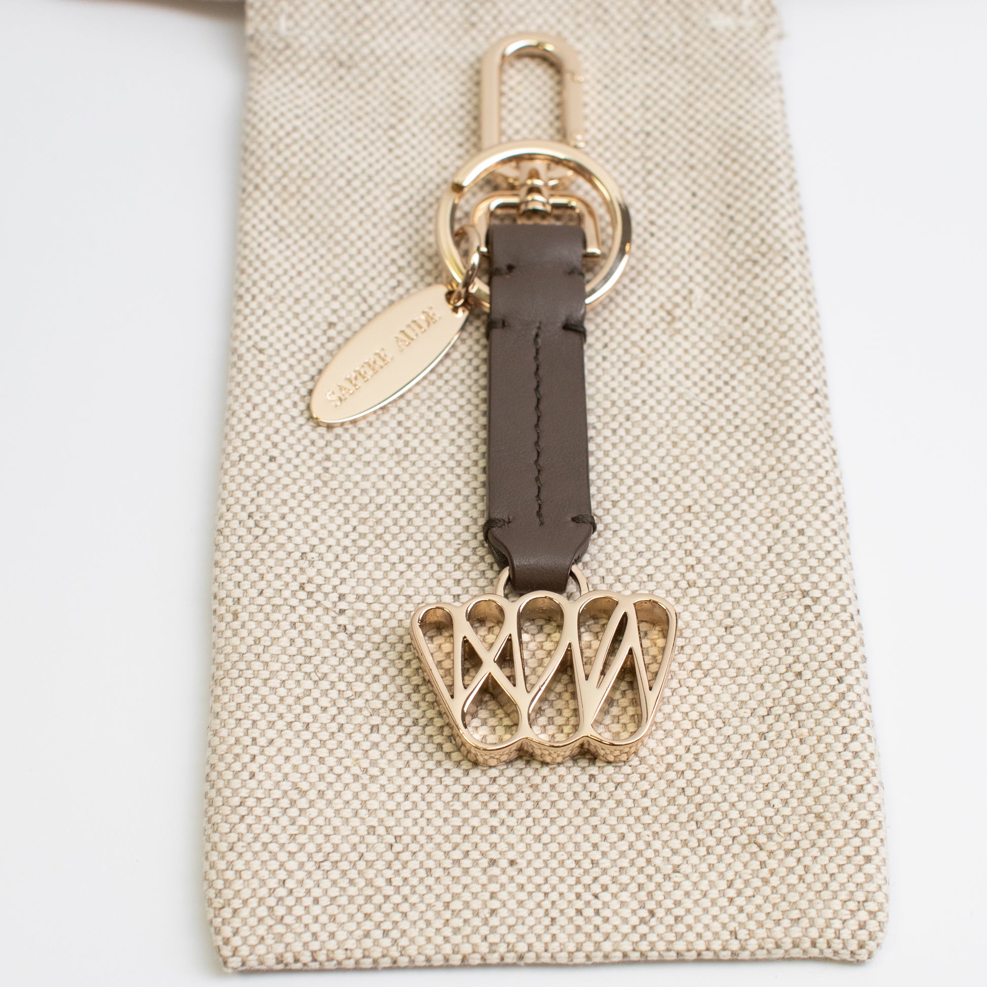 Made from rescued calfskin leather, with light gold hardware and engraved Sapere Aude brass tag. A limited-edition charm—inspired by the iconic collars of Tudor and Renaissance queens. Carry a symbol of presence, power and poise.