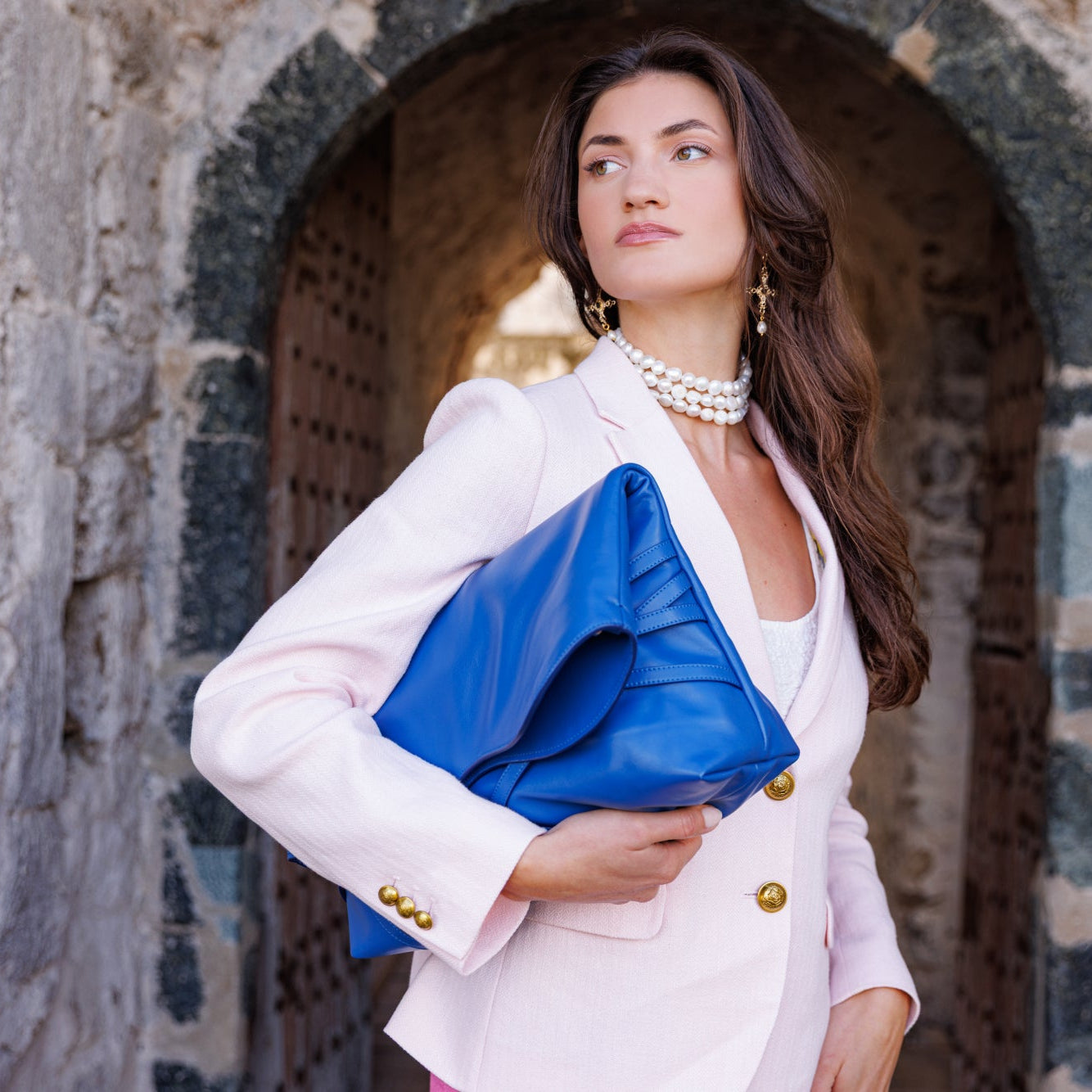 This edition of the Parr Clutch is part of a strictly limited run of just five pieces. Crafted from soft Italian calfskin in intense cobalt blue, it’s a study in sculptural elegance and saturated colour. With its clean lines and signature crisscrossing straps, this all-leather version lets the silhouette speak for itself — bold, assured, and unmistakably modern. Designed to be carried as a statement clutch or worn over the shoulder as a relaxed hobo, the Parr balances strength and fluidity in every detail. It is fully lined in breathable Irish linen and finished with our signature gold Ruff — a symbol of courage, wisdom, and individuality.